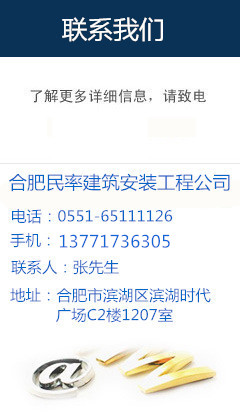 合肥民率建筑安裝工程有限公司 版權(quán)所有 地址:合肥市濱湖區(qū)濱湖時(shí)代廣場(chǎng)C2樓1207室 電話:0551-65111126 手機(jī):13771736305 聯(lián)系:張先生